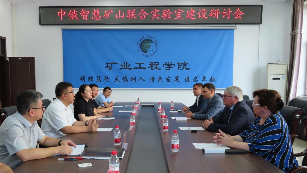 在接下来的座谈会上,院长肖福坤就学院办学特色、科研和社会服务、人才培养及实验室建设情况向来宾作了介绍。拉斯卡佐夫院士介绍了俄罗斯科学院远东分院与中方高校间的合作培养项目情况、实验室建设情况。就落实学校与俄方签署的《中俄智慧矿山联合实验室》合作协议相关细节,进行了进一步接洽。双方还就煤矿动力灾害防治、智能采掘与开采灾害感知等方向的课题合作进行了深入细致的交流,就采矿工程、资源勘查工程等专业互派国际交流生,就硕士研究生、博士研究生联合招生及培养、两校间的教师互访等共同感兴趣的话题进行了讨论。