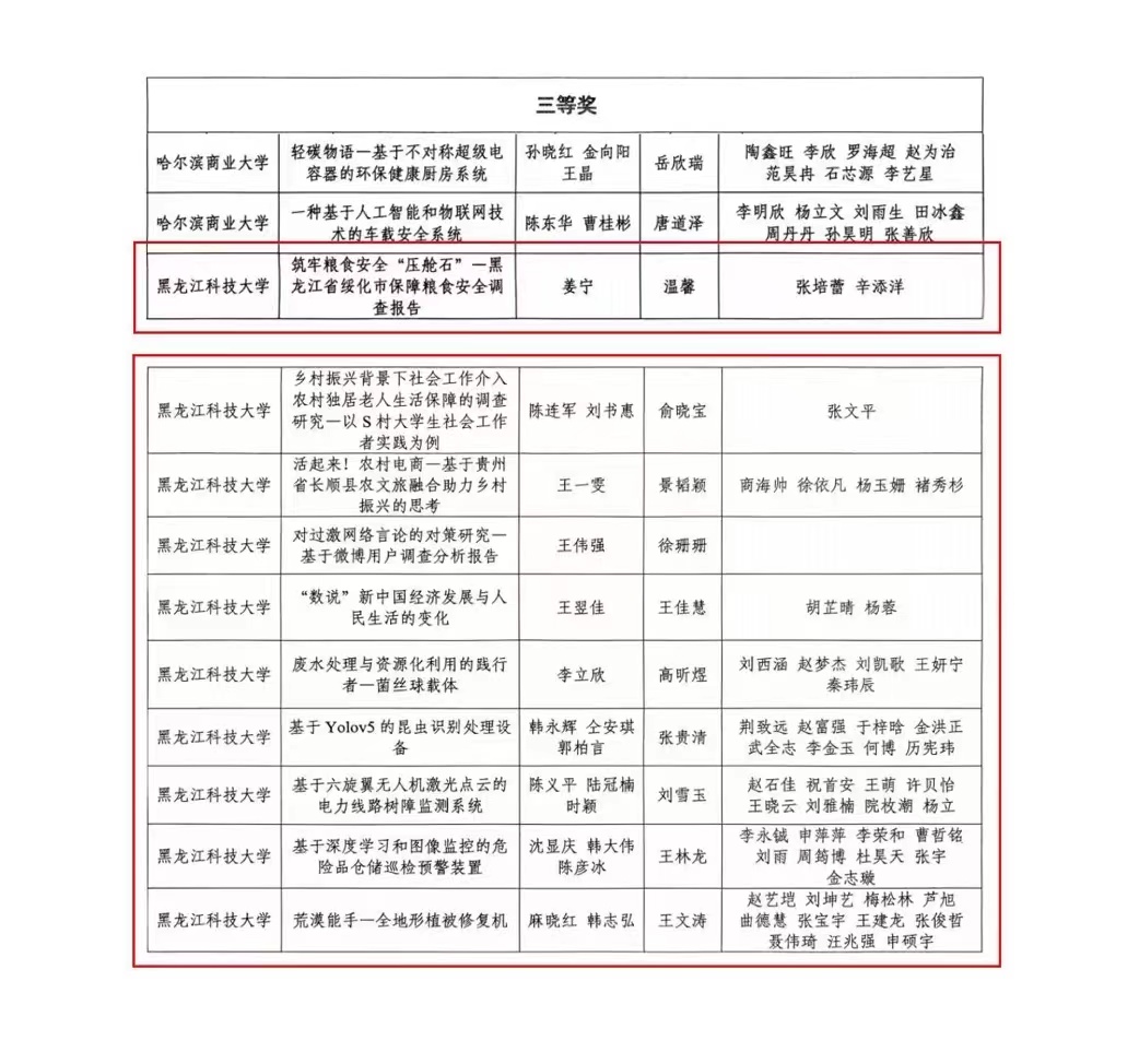 近日,由团省委、省教育厅等部门共同举办的第十八届工商银行“挑战杯”黑龙江省大学生课外学术科技作品竞赛结果揭晓,乐鱼网站_乐鱼(中国)获得一等奖4项、二等奖5项、三等奖10项。乐鱼网站_乐鱼(中国)被授予“优秀组织奖”,8名教师荣获“优秀指导教师”荣誉称号。
