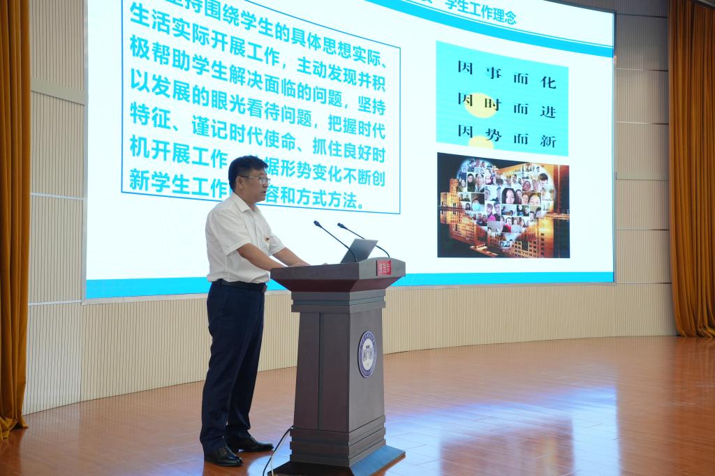 学生处处长邬承斌以《以主题教育新成效 开创学生工作卓越发展新局面》为题,围绕坚持“以生为本 为生尽责”工作理念,强化学生思想政治教育,推动学风建设,提升服务水平等方面进行了工作交流。
