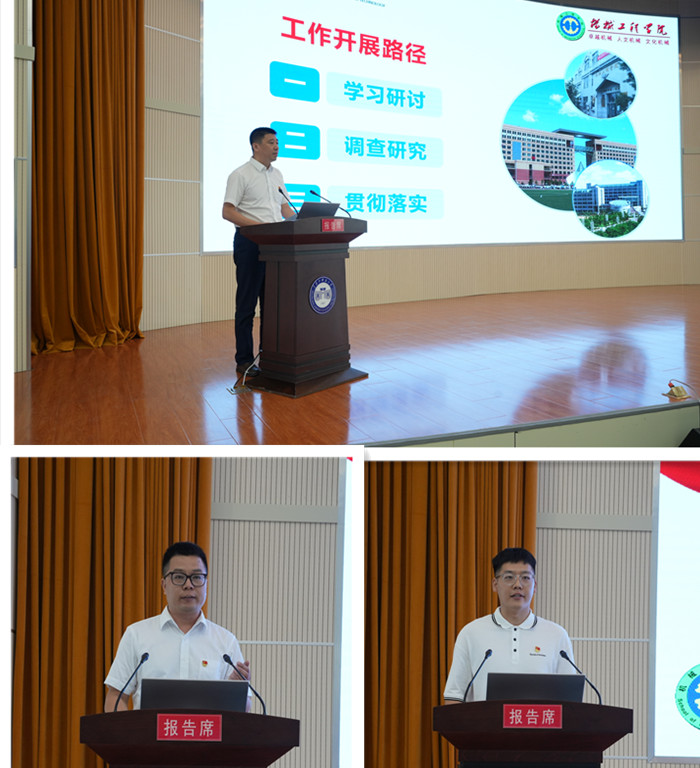 会议首先由马克思主义学院、管理学院、机械学院和学生处、财务处、资产处进行主题教育和能力作风建设工作交流。