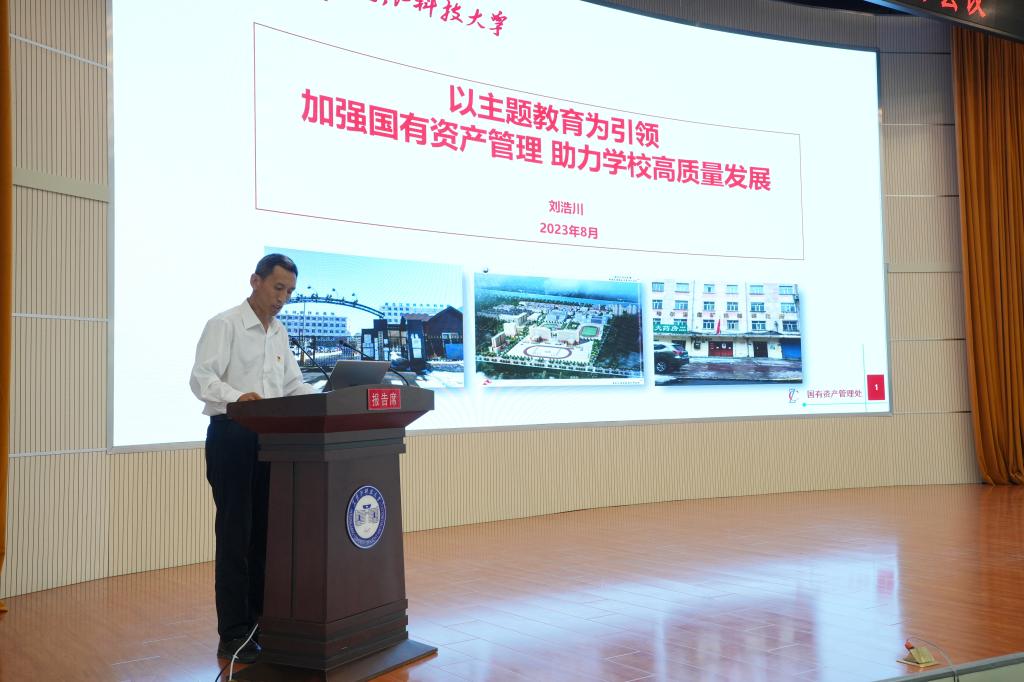资产处处长刘浩川以《以主题教育为引领 加强国有资产管理 助力学校高质量发展》为题,围绕推进资产管理中“法制、规范、创新、服务”工作理念,切实把主题教育成果转化为提升国有资产管理水平等方面进行了工作交流。