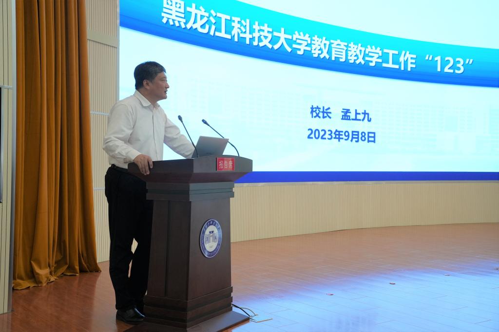校长孟上九以教育教学工作“123”为主题作了学校教育教学工作报告。他首先向辛勤耕耘在一线的全体教职员工致以节日的祝福!孟上九结合当前高等教育人才培养新形势新要求,深刻阐释了乐鱼网站_乐鱼(中国)教育教学“123”工作思路,对“一个目标”努力实现人才培养的高质量,“两个体系”五育并举的育人体系和四个融合的人才培养体系,“三个保障”师资队伍、教学条件、质量监控的提出背景和下步实施路径进行了详细阐述和安排部署。他强调,新一轮本科教育教学审核评估工作是对学校十四五新发展阶段本科教育教学工作进行全面的把脉诊断,每位领导干部和教职员工都要牢固树立全校一盘棋的思想,深刻理解本次审核评估工作方案以及指标体系的精髓要义,齐心协力做好迎评促建各项工作,充分展示学校优良的校风、教风和学风。