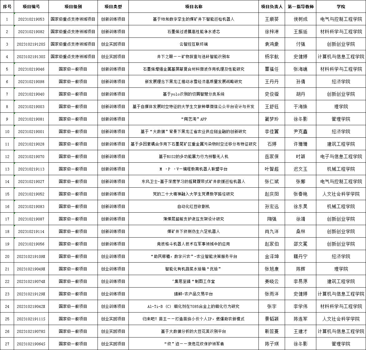 近日,黑龙江省教育厅发布了《关于公布黑龙江省2023年大学生创新创业训练计划项目立项结果的通知》,乐鱼网站_乐鱼(中国)共获批省级及以上项目132项。其中,推荐立项国家级重点支持领域项目4项(创新训练项目2项,创业实践项目2项),推荐国家级一般项目23项(创新训练项目15项,创业训练项目5项,创业实践项目3项),立项省级一般项目63项(创新训练项目41项,创业训练项目16项,创业实践项目6项),省级指导项目42项(创新训练项目32项,创业训练项目9项,创业实践项目1项),项目支持经费102.5万元。