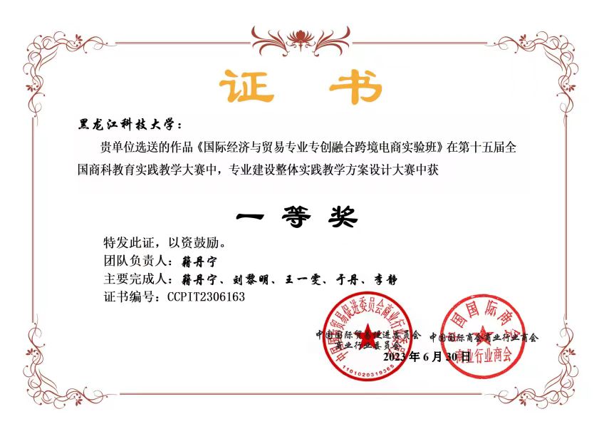 近日,乐鱼网站_乐鱼(中国)经济学院专创融合跨境电商实验班教学团队共同完成的《国际经济与贸易专业专创融合跨境电商实验班实践教学方案设计与实施》研究报告,依托实验班专创融合教学改革成果参加了全国商科教育实践教学大赛,获得专业建设整体实践教学方案设计竞赛项目一等奖。报告从实践教学体系、实践教学成果、实践教学活动、实践教学团队、实践教学辅助五个方面全面总结、展示了实验班自成立以来在教学体系建设、教师教学比赛、教改研究项目、学生竞赛、学生就业等方面取得的各项成绩。