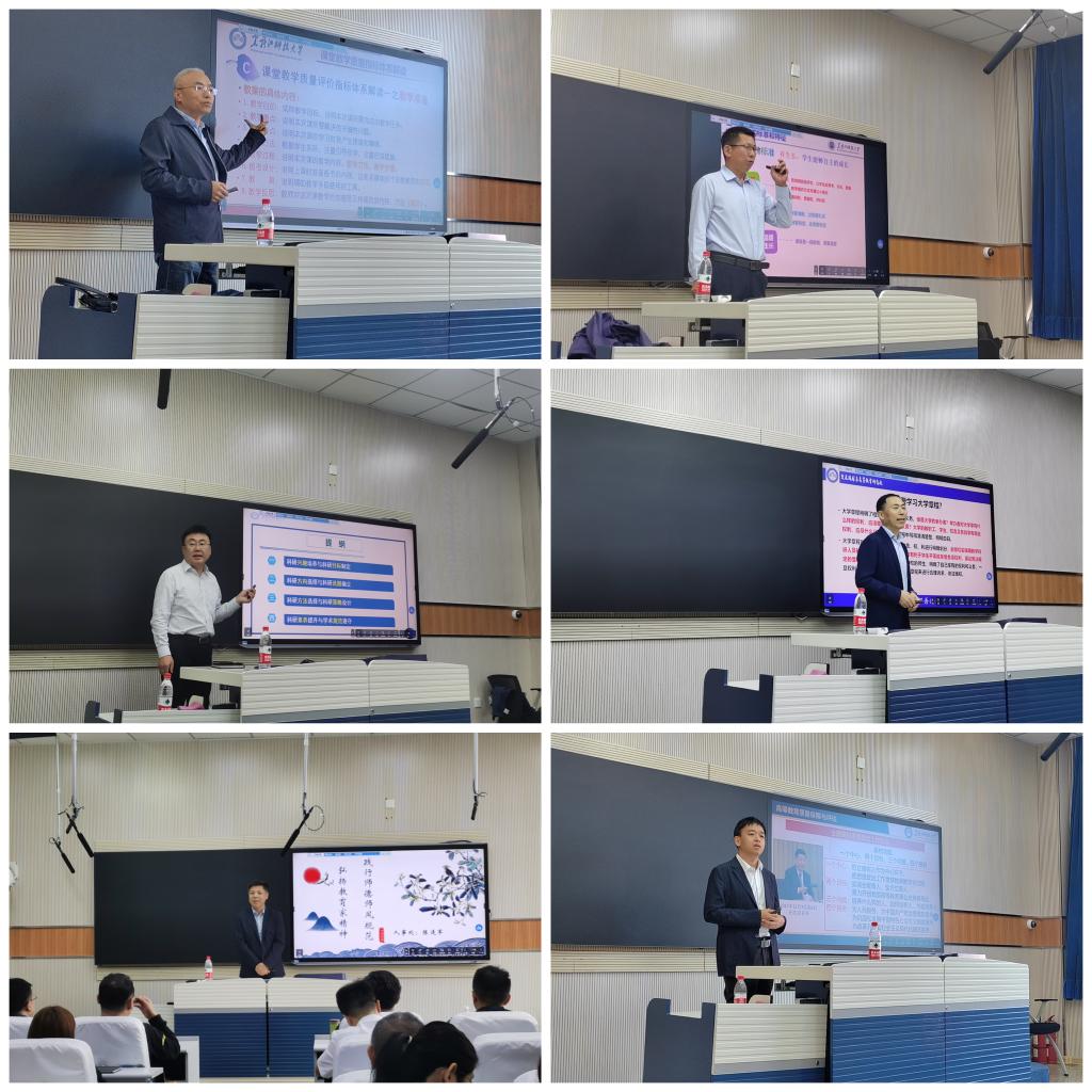 在名师交流模块中,校教学名师、督学周广林教授以“课堂教学质量评价指标体系”为题,教导教师不能只做传授书本知识的教书匠,而要成为塑造学生品格、品行、品味的“大先生”;省教学名师宋胜伟教授从好课程的“五有”标准,即有氛围、有任务、有联盟、有生长、有发展入手,为大家讲解如何上好一堂课,并同大家分享“一本自己满意的教案”;管理学院副院长张倩与大家分享自己科研成长历程,即萌芽期、迷茫期、起步期、成长期、提升期和沉淀期,提醒青年教师做学问要沉下心来,只有潜心探索,方能水到渠成。