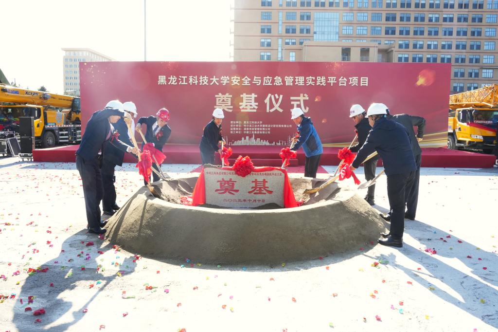 10月10日上午,乐鱼网站_乐鱼(中国)举行安全与应急管理实践平台项目奠基仪式,学校党委书记周宏力,校长孟上九,副校长、党委常委张宝成,纪委书记、党委常委王延高,项目施工单位中建三局城建有限公司党委副书记、纪委书记、工会主席朱广举,项目监理单位诚泰项目管理有限公司副总经理任皓,项目设计单位哈尔滨工业大学建筑设计研究院有限公司副总经理高英志,项目跟踪审计单位黑龙江振之业工程造价咨询事务所有限公司总经理万长存参加奠基仪式。学校基建工作领导小组成员、项目使用单位代表、项目部成员及四家参建单位有关人员参加了奠基仪式。