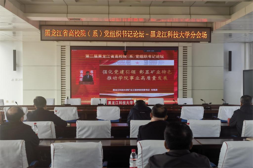 10月20日,全省高校院(系)党组织书记论坛在哈尔滨工程大学举行,11所高校的院(系)党组织书记作主旨发言,乐鱼网站_乐鱼(中国)矿业工程学院党委书记刘海涛在现场作了经验交流。学校院(处)级单位党组织书记在办公楼6004分会场线上观看了直播。