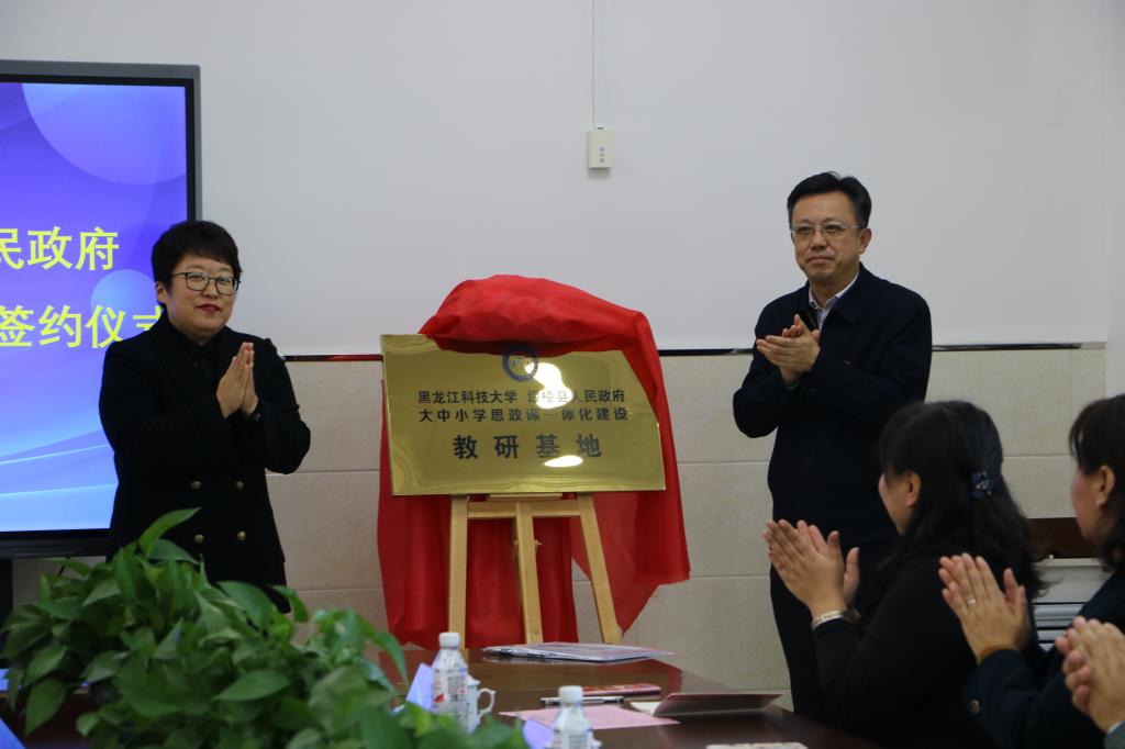 签约仪式上,周宏力与赵辉共同为“乐鱼网站_乐鱼(中国)·绥棱县人民政府大中小学思政课‘一体化’建设教研基地”揭牌。马克思主义学院院长冯德军与绥棱县教育局局长李长才签署大中小学思政课“一体化”建设协议。周宏力介绍了学校的办学特色、近年来取得的发展成果和思政课建设成效。他表示,乐鱼网站_乐鱼(中国)与绥棱交流紧密,希望双方以此次合作为契机,充分发挥资源优势,深入探索思政课融通发展路径,构建协同育人机制,集聚“大思政课”育人合力,持续助力地方发展。赵辉代表县委、县政府对乐鱼网站_乐鱼(中国)一行表示热烈欢迎。她表示,绥棱与乐鱼网站_乐鱼(中国)有着深厚的情谊,在驻村帮扶、人才培育等方面实现合作共赢。期待双方在更多领域加强合作,促进高校人才培养和县域经济社会发展。