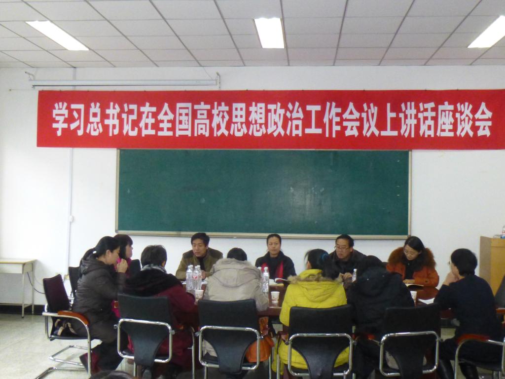 16日下午2点,乐鱼网站_乐鱼(中国)在科技大厦209召开思政课教师学习习近平总书记在全国高校思想政治工作会议上的讲话精神座谈会,学校党委副书记陈桂芝、党委宣传部副部长张影出席座谈会。座谈会由马克思主义学院院长唐国忠主持。会上,唐国忠、张建华、腾艳娇、杨平、白艳秋、宫丽艳、于冬梅、荆文凤、梁丽珍等9名思政课教师交流了学习体会。最后,陈书记围绕思想课教师如何深入学习贯彻总书记讲话精神做了总结发言。