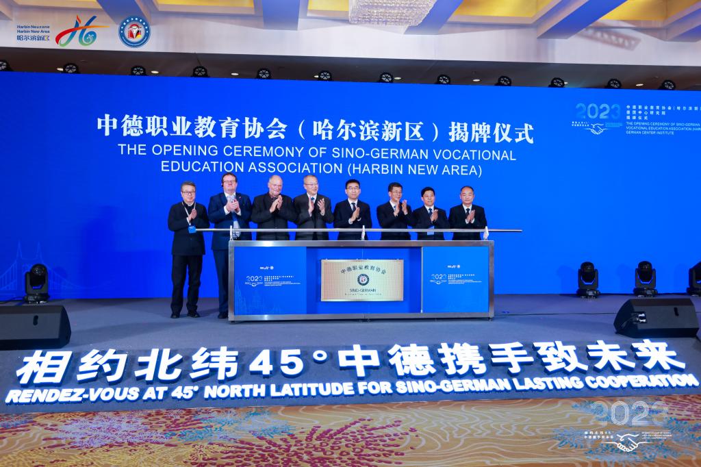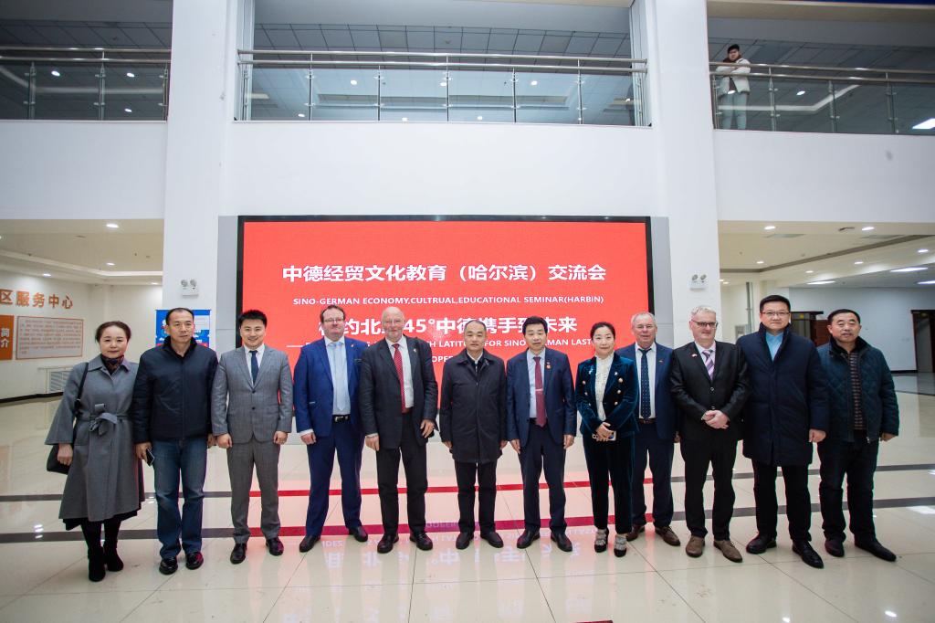 11月18日上午,由哈尔滨市政府主办,哈尔滨新区管理委员会承办的“相约北纬45°中德携手致未来”中德经贸文化教育(哈尔滨)交流会在哈尔滨新区举行,来自中德两国教育界、企业界百余位嘉宾齐聚一堂,共商合作、共叙友谊,共谋发展、共话未来。