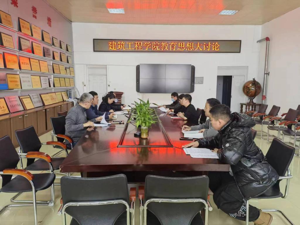 11月22日下午,建筑工程学院在学院会议室开展了教育思想大讨论活动。学院党政领导班子成员、教研室主任参加了活动。会议紧紧围绕十个方面内容,总结成绩和不足,准确分析研判学校、学院和专业发展态势,明确下一步学院和各专业工作重点,统一思想,提高站位,担当使命,履行职责,及时提炼和汇总研讨成果。