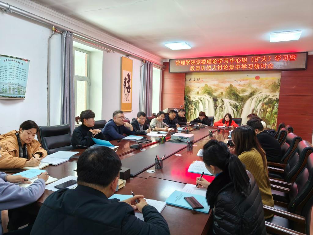 11月16日,管理学院组织开展党委理论学习中心组(扩大)学习暨教育思想大讨论集中学习研讨会,学院党政领导和各系部主任、支部书记、教师代表参加。会上交流气氛热烈且富有活力,大家在反馈了各系部教育思想大讨论活动情况的同时,分别分享了学习心得与收获,阐释和剖析了发现的问题,并给出解决建议。