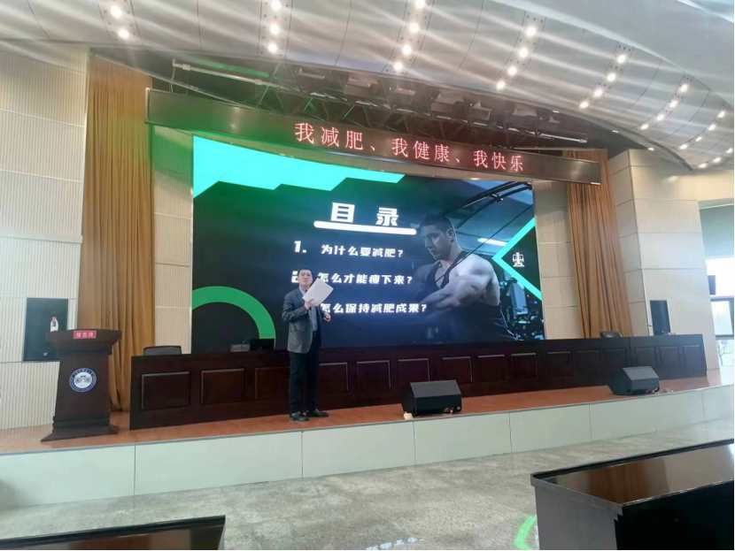 随后,学校办公室邹宜兵老师作了“我减肥、我健康、我快乐”的讲座。邹老师以风趣幽默的语气先后从“为什么要减肥”“怎么才能瘦下来”“卡平台期或反弹了怎么办”和“怎么保持减肥成果”四方面进行了解读,并围绕个人减肥成功的案例和师生日常生活中所遇到的减肥问题进行了答疑解惑式的交流。