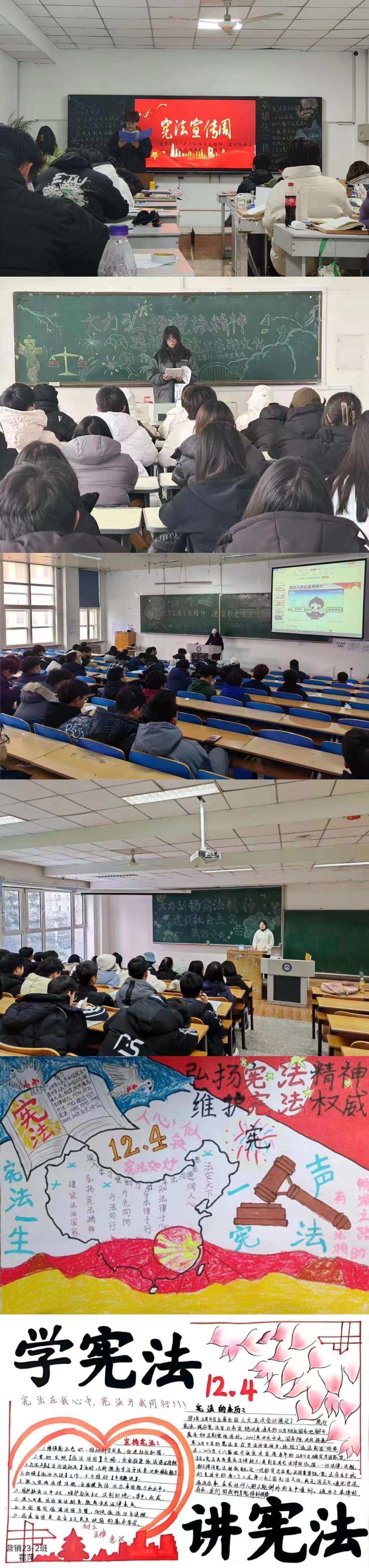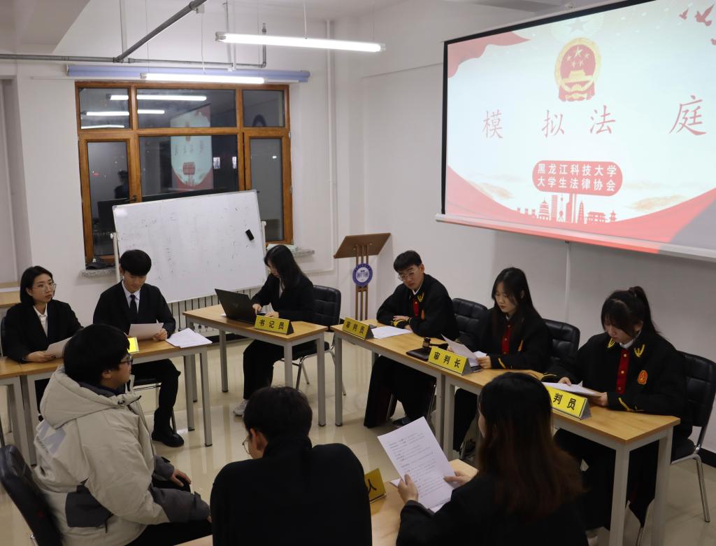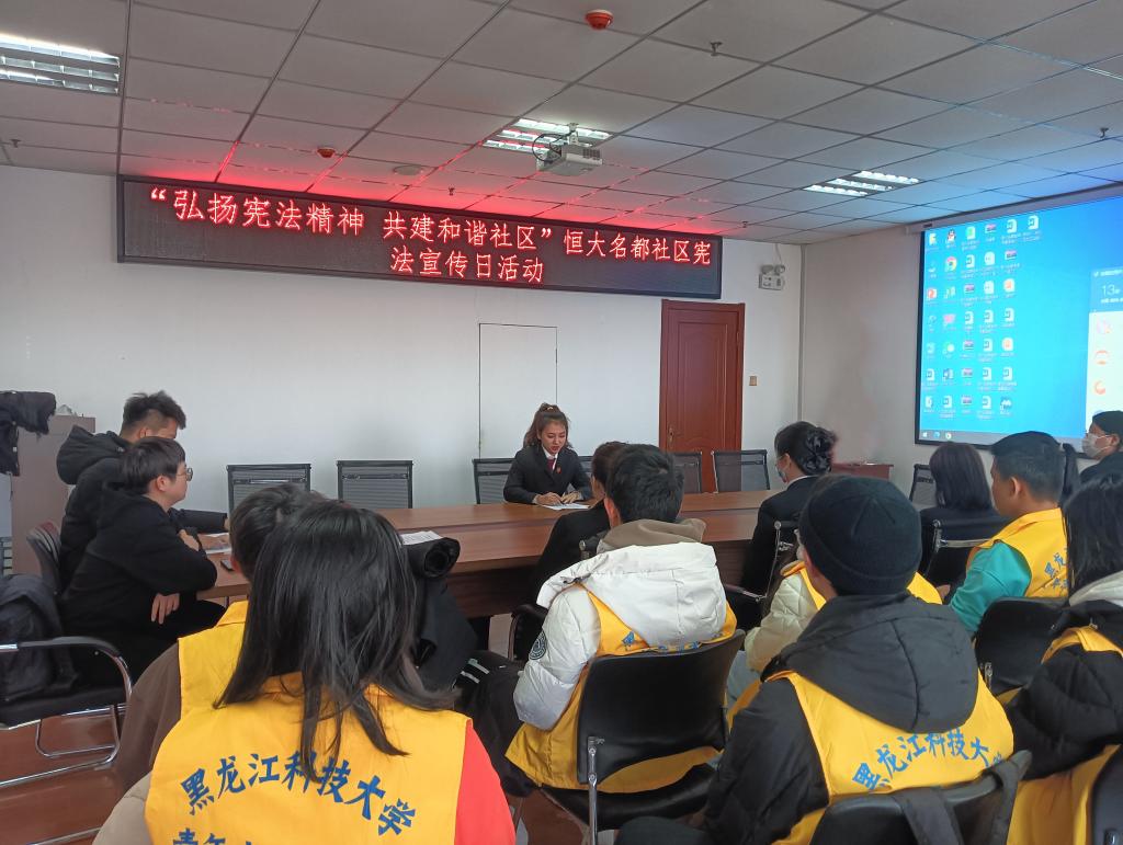 守法于行,先行一步。校青年志愿者协会前往哈尔滨市恒大名都社区进行普法宣讲活动,与社区工作人员和居民交流研讨我国宪法基本内容、实施意义以及“国家宪法日”的由来等相关知识,结合实际案例“以案释理”,更加直观、生动普及宪法知识;大学生法律协会团支部组织开展模拟法庭,结合真实案例,运用所学法律知识进行剖析,普及宪法知识、弘扬宪法精神,维护宪法权威。