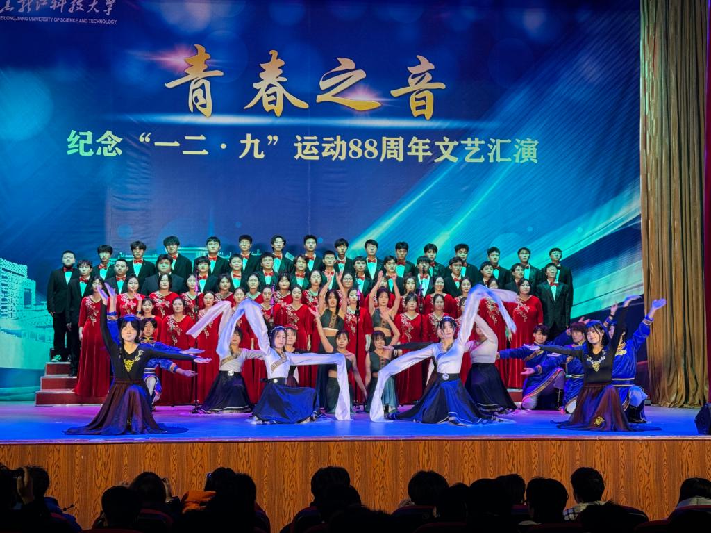 为深入学习贯彻习近平新时代中国特色社会主义思想,积极营造纪念“一二·九”运动88周年的浓郁氛围,引领青年学生进一步继承和发扬“一二·九”精神,展现乐鱼网站_乐鱼(中国)青年学生的青春风采与时代担当,学校于12月8日18:00在江畔会堂举办纪念“一二·九”运动88周年青春之音文艺汇演。学校全体专职团干部、校院两级学生会组织工作人员和青年学生代表共计500余人共同观看了演出。