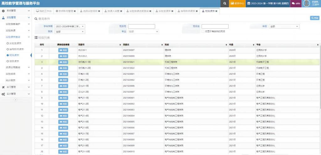 信息化赋能教学管理效能提升,完成教务系统个性化升级改造、实验室信息化平台建设、毕业论文(设计)管理平台建设,实现了实验室安全准入、危化品管理、低值易耗品等管理信息化,毕业设计过程管理信息化。
