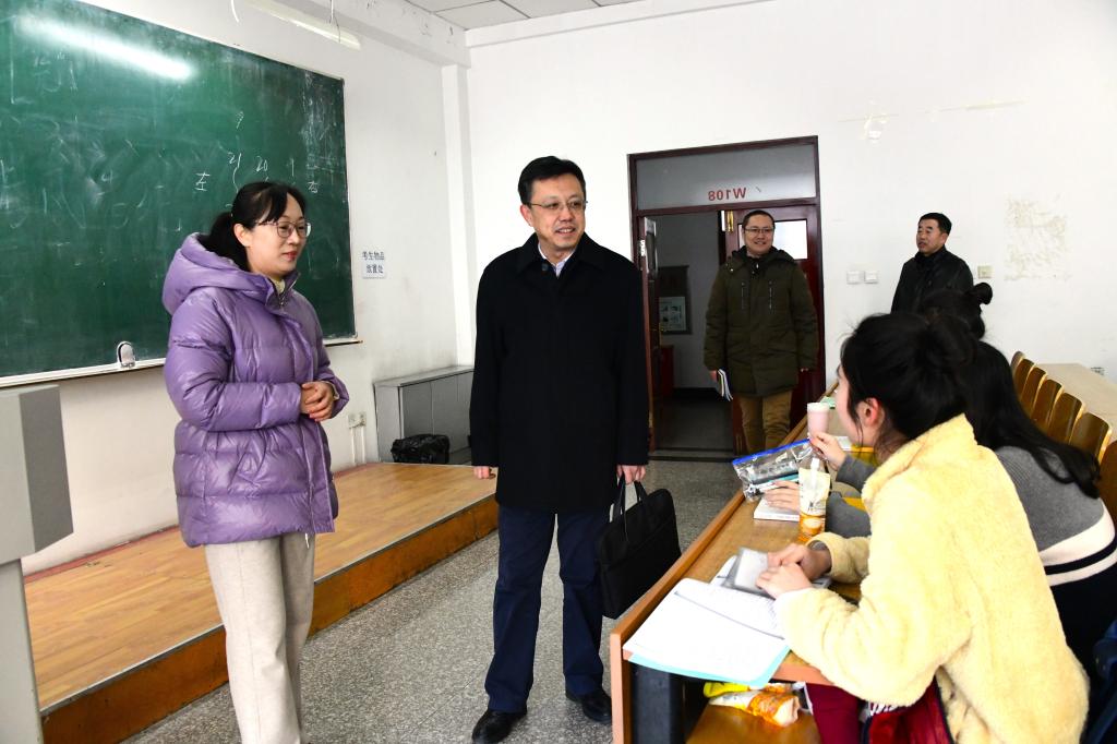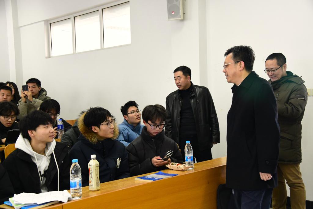 开学首日,校党委书记周宏力、校长孟上九深入教室、教师休息室等实地走访,查看新学期开学启动情况,与师生进行了亲切交流,并深入课堂与大学生同上新学期第一课。