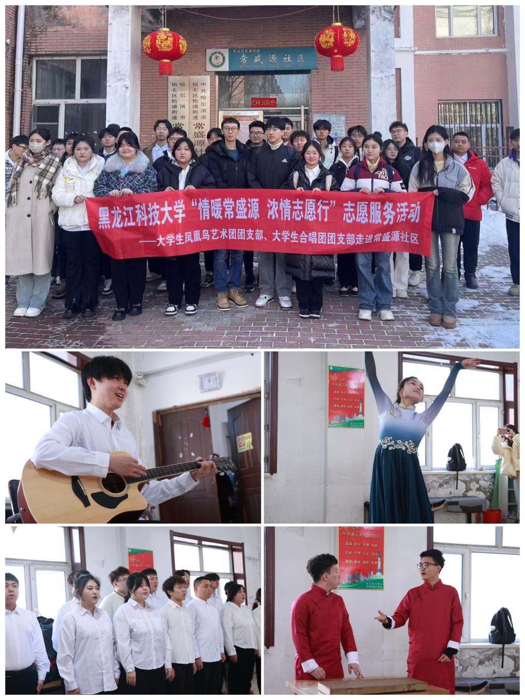 青年志愿者协会郭明义爱心团队团支部走进广信悦美社区的空巢老人家中,为老人打扫房间、送去温暖;大学生凤凰鸟艺术团团支部联合大学生合唱团团支部赴松浦街道常盛源社区,开展了“情暖常盛源、浓情志愿行”志愿服务活动,同学们为社区居民表演了独舞《乌兰巴托的夜》、吉他弹唱《稻香》、相声《文玩》、爱国歌曲《共筑中国梦》《唱支山歌给党听》等节目,赢得了广大居民的阵阵掌声;大学生军乐团赴爱康养老院开展了“志愿服务暖人心 托起幸福夕阳红”志愿服务活动,进行了单簧管、竹笛、二胡等乐器表演,为敬老院增添了喜乐与祥和。