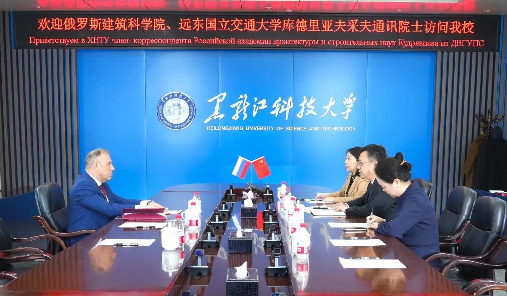 姜云介绍了建筑工程学院在研究生培养及中外合作办学项目土木工程专业的情况,并希望在岩土工程、冻土研究、青年教师培养、引进外国专家项目等方面与远东国立交通大学展开合作。李智明就本人研究项目“动水条件下富水砂层人工冻结壁形成过程的多场耦合研究”的进展情况做了汇报。随后、双方就学生联合培养的课程设置、语言要求、科研人员派出等合作细节进行了磋商。