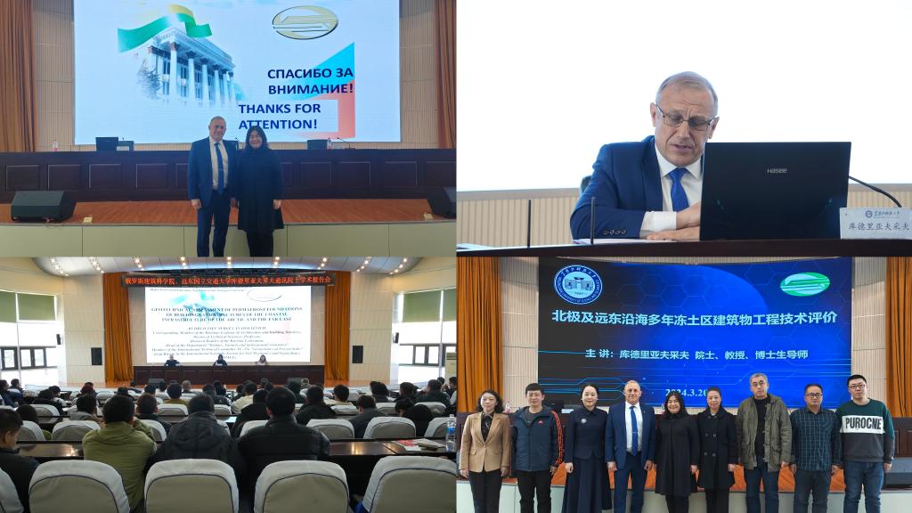 3月20日上午,库德里亚夫采夫在报告厅作了题为《北极及远东沿海多年冻土区建筑物工程技术评价》的学术报告。报告会由副校长谭旭红主持。国际交流合作处、科技处、建筑工程学院相关负责人及相关专业教师和研究生共240余人参加了报告会。