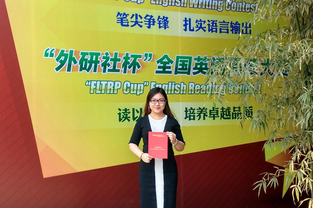 12月5日至11日,来自全国30个省、市、自治区及港澳台地区的选手汇聚一堂,共同角逐2015“外研社杯”全国英语演讲大赛全国总决赛。比赛在北京外国语大学培训中心——外研社国际会议中心举办。124名选手同台竞技,奉上一场思维和语言的盛宴。外国语学院2013级英语13-2班的王艺同学在5000余名网络选手的对决中,杀出重围,与来自全国各省份前三甲的90名选手会师决赛,经过为期一周的激烈比赛,最终王艺同学获得2015“外研社杯”全国英语演讲大赛全国总决赛三等奖,在我省进入总决赛的五名选手中,排名第二,创乐鱼网站_乐鱼(中国)历史最好成绩。