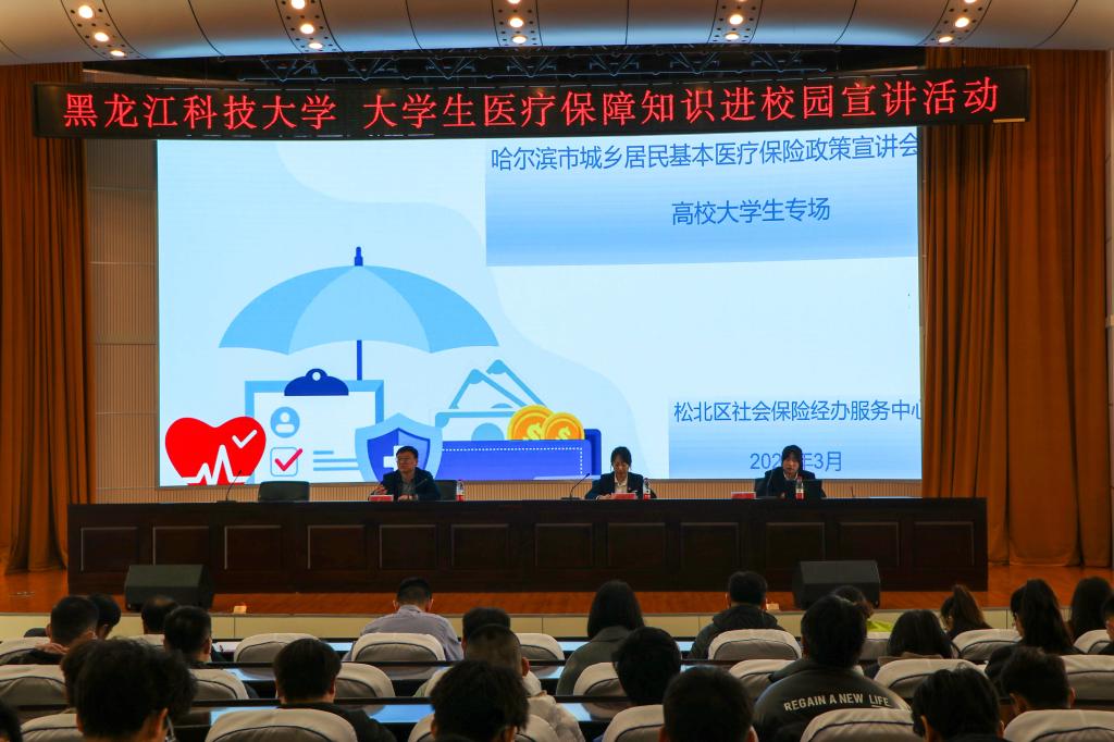 宣讲会上,松北区社会保险经办服务中心宋偲偲、徐丽通过政策解读、案例分析、知识问答等形式重点围绕大学生参加哈尔滨市城乡居民基本医疗保险保目的及意义、参保缴费、待遇保障、异地就医等方面进行宣讲,并现场对师生提出的医保参保和报销流程等政策性问题进行详细解答。