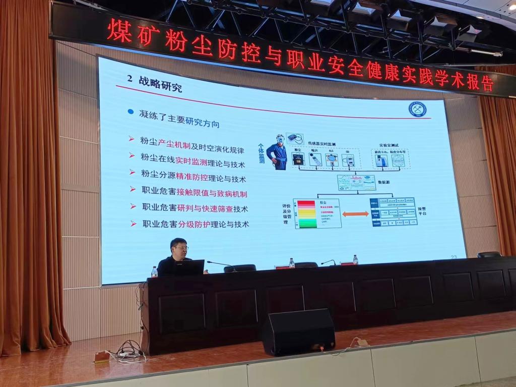 报告会上,江丙友教授结合我国煤矿粉尘防控情况及矿工职业健康形势,从基本状况、战略背景、安理实践、创新成果四个方面详细介绍了煤矿粉尘防控目前状况及未来发展,同时对比国内外煤矿粉尘防控技术,对我国的煤尘防控提出了新设想。