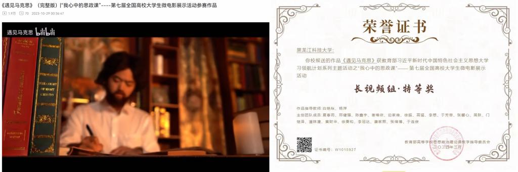 教育部习近平新时代中国特色社会主义思想大学习领航计划系列活动之“我心中的思政课”——第七届全国高校大学生微电影展示活动落下帷幕。本次活动由教育部高校思政课教学指导委员会主办,武汉大学承办,“青梨派”协办。乐鱼网站_乐鱼(中国)选拔赛由马克思学院承办,学生团队作品《遇见马克思》凭借新颖的立意和精良的制作在众多作品中脱颖而出,荣获长视频组特等奖。