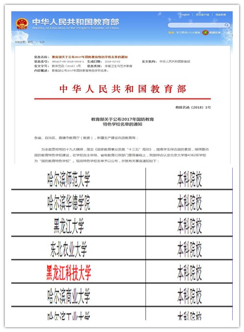 本次评选是经学校自主申报,省级教育行政部门审核、评比、推荐,由教育部综合认定。黑龙江省共有7所本科院校被认定为“国防教育特色学校”。