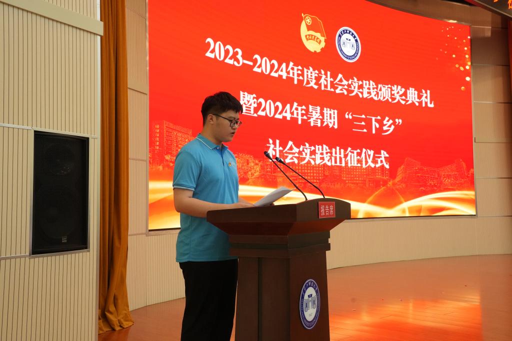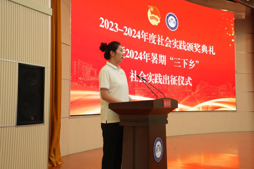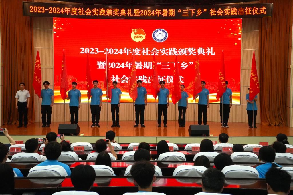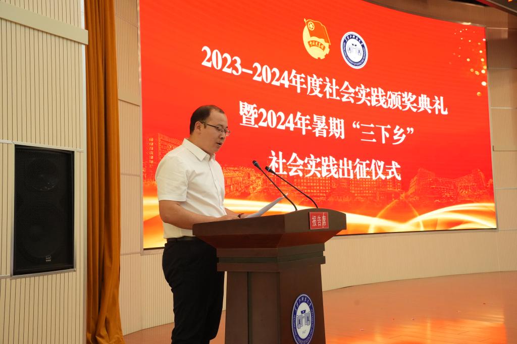 6月25日下午,学校2023-2024年度社会实践颁奖典礼暨2024年暑期青年学生“三下乡”社会实践出征仪式在办公楼报告厅举行。校党委副书记桑玉军,副校长、党委常委张保勇,党委常委、宣传统战部部长王洪秋,学工部部长、学生处处长邬承斌,教务处处长宋志伟,招生与就业工作处处长高志刚出席仪式,全体专职团干部,省级、校级社会实践重点团队成员代表参加了仪式,仪式由校团委书记宋玉彬主持。