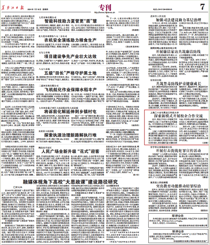 7月18日,黑龙江日报第7版专刊中,以《上海二十冶与乐鱼网站_乐鱼(中国)探索新模式开展校企合作交流》为题,报道乐鱼网站_乐鱼(中国)开展校企合作交流活动。现将全文转发,以便学习交流。