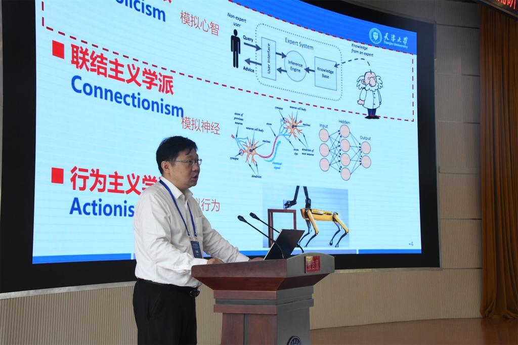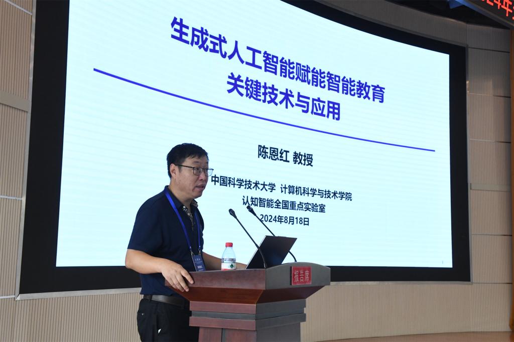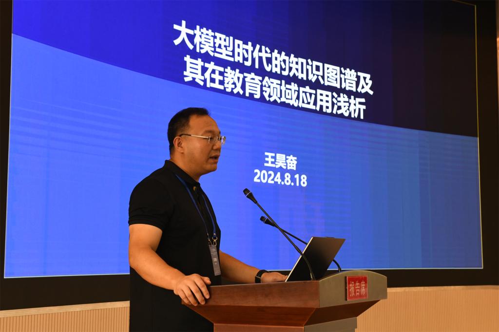 开幕式后,中国科学技术大学讲席教授、认知智能全国重点实验室副主任陈恩红,教育部重点领域知识工程课程群虚拟教研室带头人、天津大学人工智能学院副院长王鑫,东北大学教授、中文信息学会语言与知识计算专业委员会委员任飞亮,乐鱼网站_乐鱼(中国)计算机与信息工程学院教授、认知智能研究所负责人刘兴丽,同济大学特聘研究员、全球最大中文开放知识图谱联盟OpenKG发起人之一王昊奋分别进行主旨报告,共同探讨新一代知识工程如何赋能课程教学资源建设。