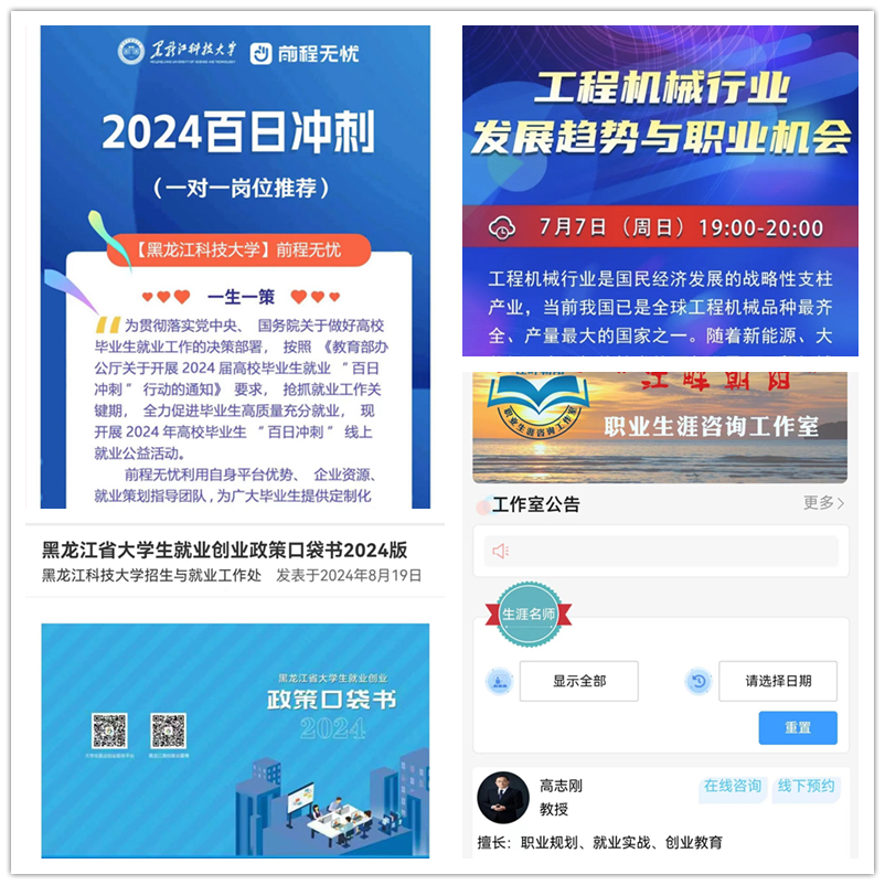 暖心帮扶,提升服务效能。学校联合前程无忧平台为2024届未就业毕业生提供定制化信息推送、专属名企岗位、一对一职业规划和简历诊断、一对一网申职位推荐和填写指导,名企内推等暖心服务,助力2024届离校未就业毕业生求职应聘;依托黑龙江省普通高校困难毕业生就业帮扶管理系统对全校433名困难重点对象进行775次精准帮扶;通过“江畔朝阳”职业生涯咨询工作室为毕业生持续提供“一对一”的线上咨询服务;依托线上“云课堂”,为毕业生提供精准“云指导”;招就处安排专人负责办理毕业生线上签约、解约、档案邮寄等各项业务工作,确保就业服务不打烊。