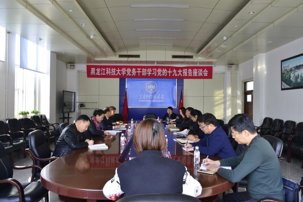 10月24日下午,乐鱼网站_乐鱼(中国)党务干部学习党的十九大报告座谈会在办公楼6001会议室召开。校党委副书记陈桂芝出席座谈会,与大家交流了学习体会,并对院(处)级党组织书记和党支部书记如何贯彻落实好十九大精神提出了要求。矿业工程学院党委书记赵喜江、环化学院党委书记周国江、电信学院党委书记王立云、经济学院党委书记张宝成、人文学院党委书记林艳、国际教育学院党委书记邬承斌、理学院党委书记王建国,电气学院教师党支部书记苏勋文、管理学院教师党支部书记戚洪亮、建工学院教师党支部书记王宝君、计算机学院教师党支部书记廉龙颖在座谈会上做了专题发言。座谈会由党委常委、组织部部长陈玉平主持。