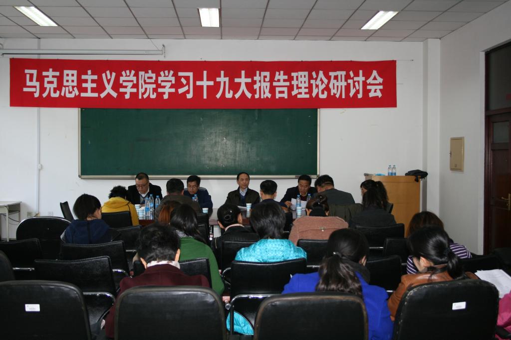 10月24日下午,乐鱼网站_乐鱼(中国)马克思主义学院在科技大厦二楼会议室召开学习党的十九大报告理论研讨会。校党委书记武俊峰出席会议并讲话。他在讲话中对大家的发言给予了充分肯定,并就报告中首次提出的新时代、新思想、新论断、新目标等内容与大家交流了学习体会。他希望马克思主义学院能充分发挥自身在理论研究的学科优势和思政课教师教育者、研究者和传播者的作用,在学习宣传贯彻党的十九大精神上、在推进“四进四信”专题教学工作中继续学在前处、研在深处,站在高处、讲在真处、教在实处,力争多出一批高水平的成果和经验,在践行立德树人的使命中不断彰显哲学社会科学学科和工作者的重要作用。