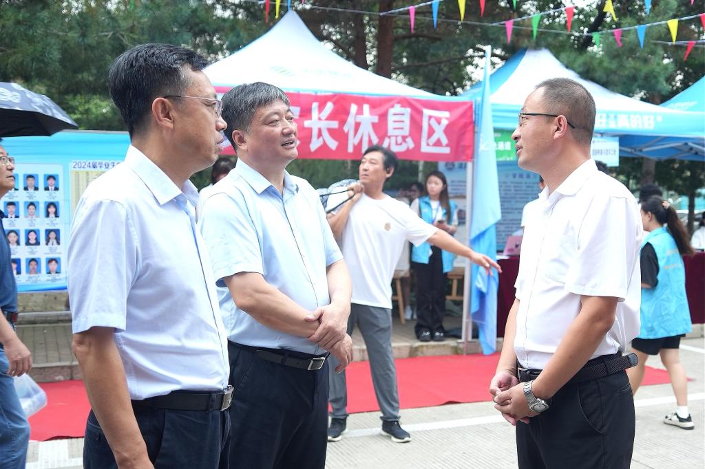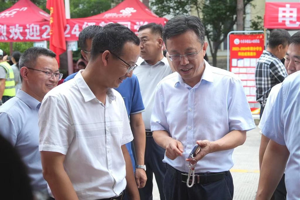 8月30日,是乐鱼网站_乐鱼(中国)2024级新生入学报到首日。上午9时,校党委书记周宏力、校长孟上九、副校长张宝成一行深入迎新现场,检查指导迎新工作,看望2024级新生和家长,慰问迎新工作人员和大学生志愿者。