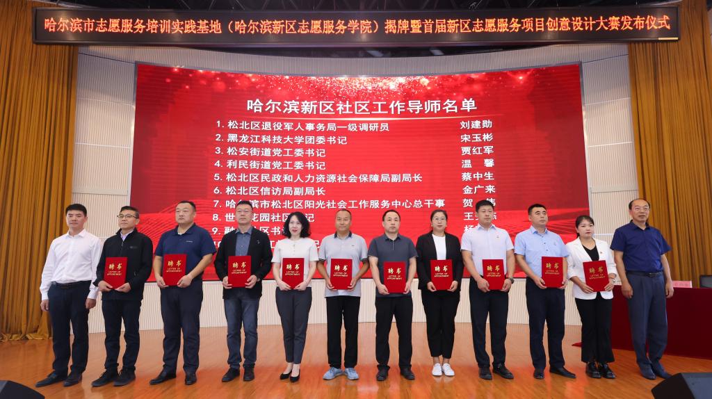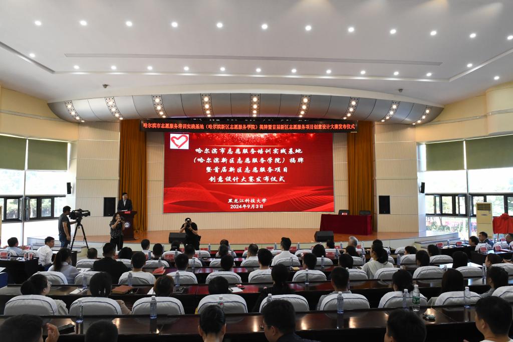 在深入学习贯彻党的二十届三中全会及省委十三届六次全会精神之际,为构建多主体政校产学合作共同体,推进“新文科”建设背景下的产业学院建设,9月3日上午,哈尔滨市志愿服务培训实践基地(哈尔滨新区志愿服务学院)揭牌暨首届新区志愿服务项目创意设计大赛发布仪式在乐鱼网站_乐鱼(中国)举行。省、市、区委社会工作部领导、部分校领导、新区各高校教育同仁、九区九县社会工作部部长,新区各街道、社区、企事业单位志愿服务队负责人和优秀志愿者代表,学校教务处、校团委和人文学院师生等共计260余人参加会议,会议由副校长张保勇主持。