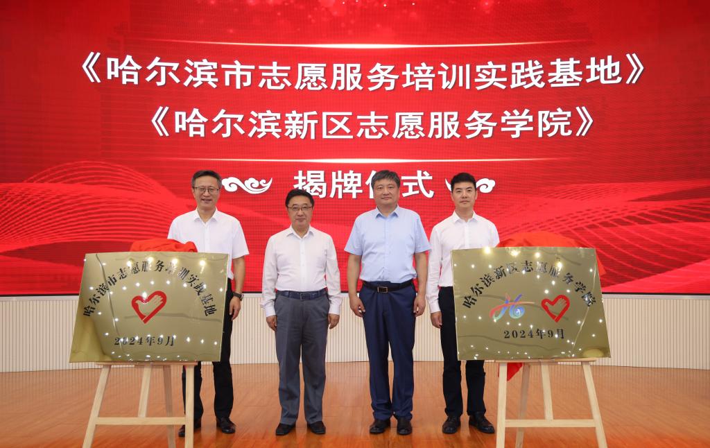 孙镝飞、孟上九、王世轩和钟波共同为“哈尔滨市志愿服务培训实践基地”“哈尔滨新区志愿服务学院”揭牌。新区志愿服务学院下设“双孵化基地”,其中志愿服务项目孵化基地设在乐鱼网站_乐鱼(中国)人文社会科学学院。