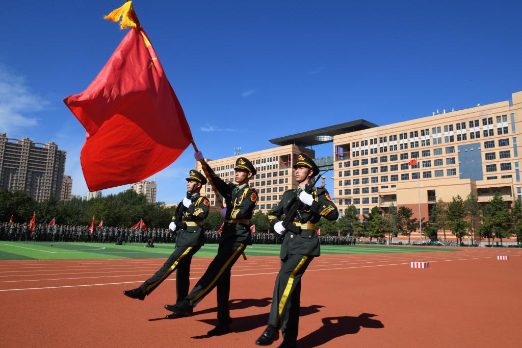 在校党委书记周宏力“按计划进行”的指令下,标兵有序就位,分列式正式开始。