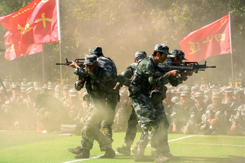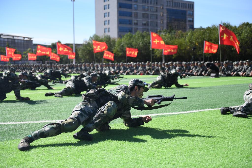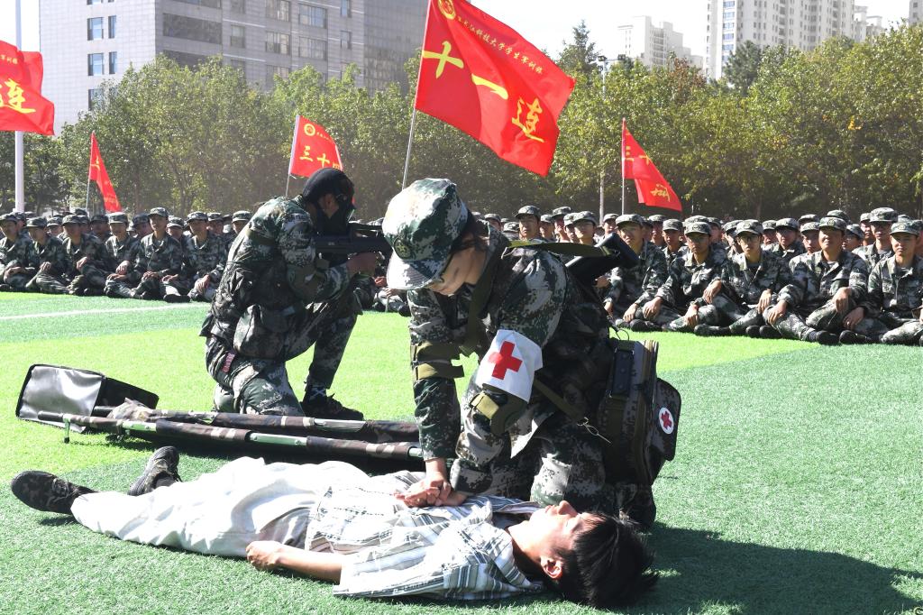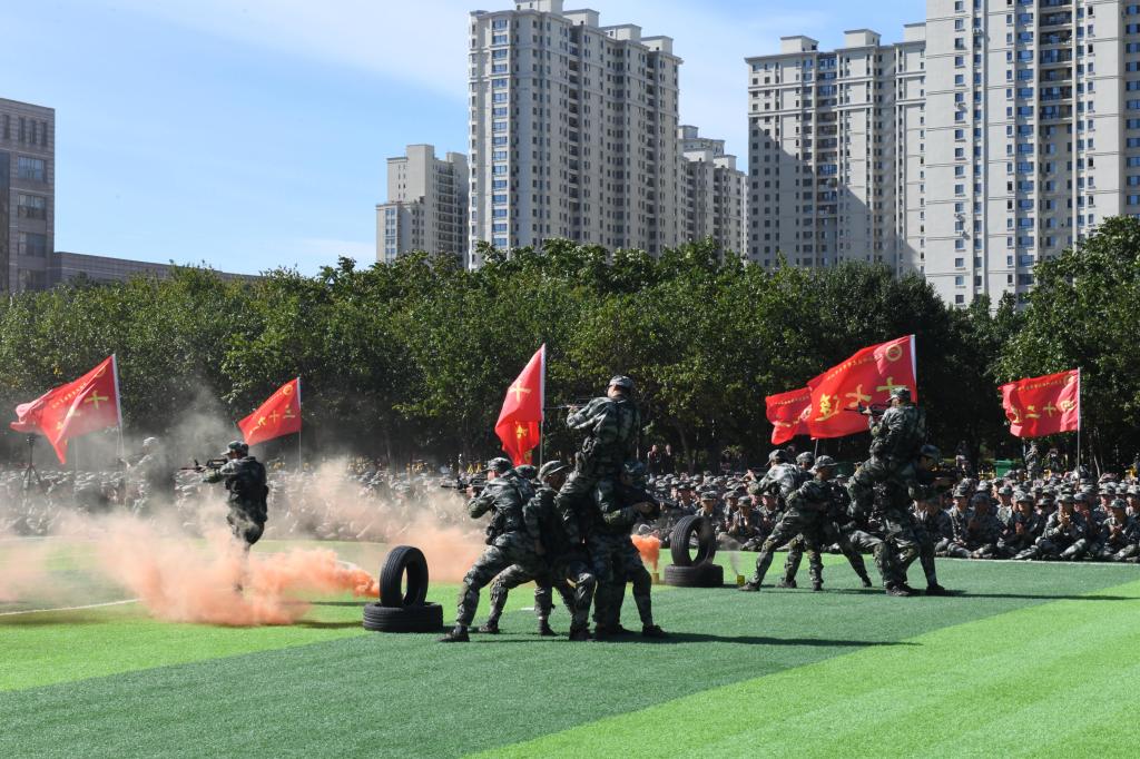 各学院受阅方队迈着整齐的步伐、喊着铿锵的口号、昂首阔步依次走过主席台前接受检阅。由矿业工程学院新生组成的军体拳方队、建筑工程学院新生组成的刺杀操方队和管理学院新生组成的战术方队依次进行了成果汇报,他们身形矫健、拳脚敏捷,一招一式无不体现出军人风范。