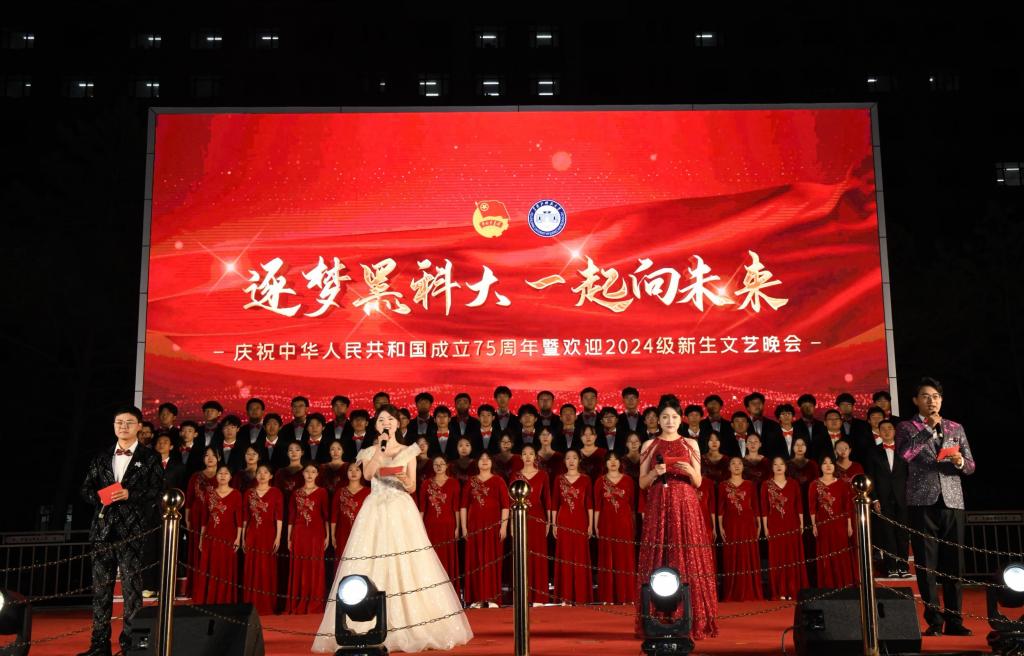 为热烈庆祝中华人民共和国成立75周年,激励和引导全校师生大力弘扬爱国主义精神,鼓舞和号召2024级新同学以积极向上、奋发进取的姿态开启人生新的征程,9月23日18:30,学校在体育文化休闲广场隆重举办“逐梦黑乐鱼网站_乐鱼(中国)、一起向未来”庆祝中华人民共和国成立75周年暨欢迎2024级新生文艺晚会。校党委书记周宏力,校党委副书记桑玉军,副校长陈凯云、张宝成、赵振民、谭旭红,纪委书记王延高,党委常委、宣传统战部部长王洪秋,党委常委、组织部部长王志磊,学校办公室、学生处、教务处、校团委等部门负责人,各学院党委书记、副书记,全校专职学生工作干部与5000余名2024级新生共同观看了晚会。