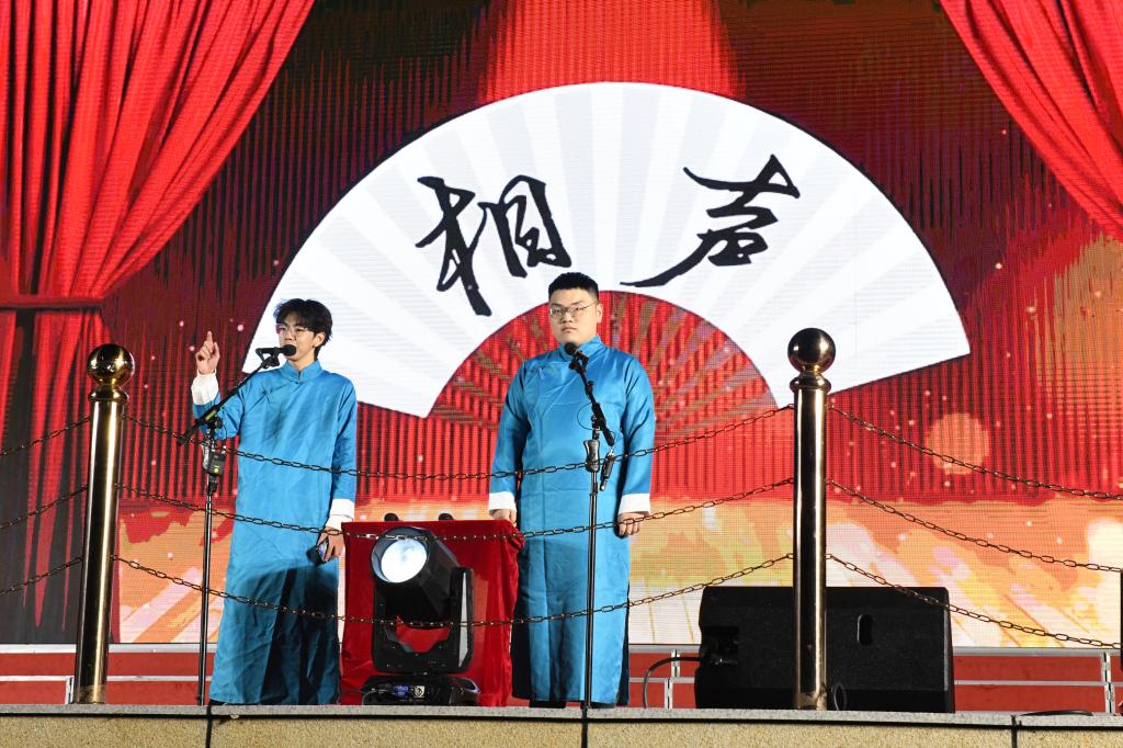 晚会在充满活力、激情四射的舞蹈中拉开帷幕。晚会共分为三个篇章。在第一篇章《相聚尔滨,遇见乐鱼网站_乐鱼(中国)》中,由掌Wo魔术协会的王森昱同学表演的魔术《乐鱼网站_乐鱼(中国)欢迎你》,台上台下互动连连,原本的扑克牌先后变成了一张张乐鱼网站_乐鱼(中国)校园美景、2024级新生报到军训等记录新生入学一个月来学习生活的照片和最后的“乐鱼网站_乐鱼(中国)欢迎你”字样,场下爆发出了一阵又一阵热烈的掌声。大学生凤凰鸟艺术团倾情演绎的舞蹈《重返十七岁》,轻盈的步伐,诠释了青春的激情,旋转与跳跃,蕴含着对大学生活的无限憧憬。电信学院许天赐和廉程博同学表演相声《轻松一“课”》,在一逗一捧中演绎了常见的大学校园诈骗案例,教育同学们引以为戒,增强识骗防骗意识,谨防上当受骗。校园十佳歌手和外国语学院青年学生共同带来歌舞表演《一起向未来》,节奏轻快歌声优美,唱出了乐鱼网站_乐鱼(中国)人心中对亚冬会的满心期待,营造了喜迎哈尔滨亚冬会的浓厚氛围!