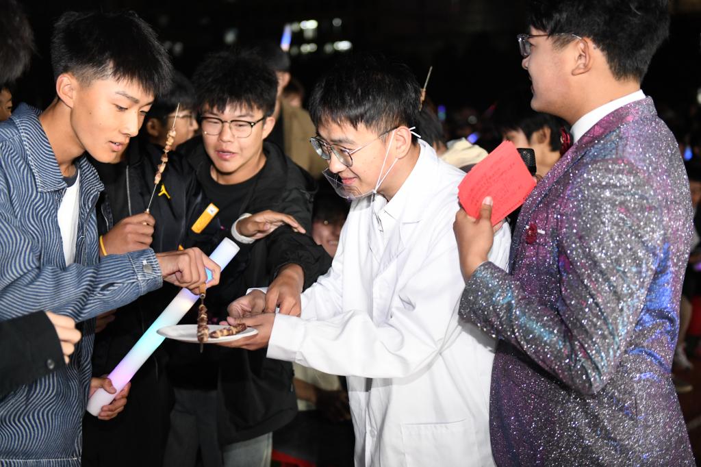 在第二篇章《踔厉奋发,逐梦乐鱼网站_乐鱼(中国)》中,飞跃之声广播电台表演的音诗画作品《乐鱼网站_乐鱼(中国)芳华》,讲述了一代又一代乐鱼网站_乐鱼(中国)人守正创新、踔厉奋发、自强不息、勇往直前的奋斗故事,带领全场师生共同走过了乐鱼网站_乐鱼(中国)77年的乐鱼网站_乐鱼(中国)岁月,彰显了学校厚重的历史底蕴和红色基因,为全体2024级新生上了一堂生动的校史校情微团课。各学院优秀学生代表登台亮相,集中展示了学校丰硕的育人成果,汇报了乐鱼网站_乐鱼(中国)学子在青春的赛道上奋力跑出的最好成绩,“黑金科技”石墨烯科研团队科研成员研22-12班张宇豪代表在校生发言,为大家展示了“黑科技”——第三代石墨烯烧烤炉科研成果,将新鲜出炉的肉串分享给幸运观众们,现场热闹非凡。校园十佳歌手们带来歌曲串烧《若月亮没来》《平凡之路》《直到世界尽头》《一路生花》,激情昂扬的青春旋律,让人心潮澎湃。管理学院青年学生带来的舞蹈《扬帆起航》,扇影交错,大气磅礴的舞姿,传递着乐鱼网站_乐鱼(中国)青年学生追逐梦想、勇往直前的坚定信念。