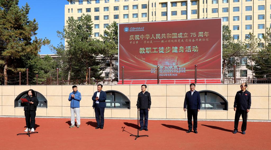 以徒步健身这种积极向上的方式庆祝中华人民共和国成立75周年,并以此表达我们对祖国的深深热爱和美好祝福,祝愿我们伟大的祖国繁荣昌盛,人民幸福安康。校党委书记周宏力宣布徒步健身活动开始,校长孟上九为徒步健身活动鸣枪发令,徒步健身活动正式启动出发。