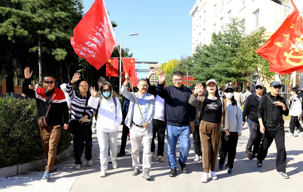 秋高气爽,丹桂飘香,午后阳光下的阿勒锦岛别有风光。26支队伍高举队旗,从学校南门出发,绕阿勒锦岛环岛一周,全程约9公里。教职工们脸上洋溢着笑容,大家一路欢声笑语,互相分享着工作与生活中的点滴,尽情体验着徒步健身运动带来的轻松与喜悦。参加本次活动的教职工们纷纷表示,要把徒步过程中积极、健康、向上的状态融入到工作和生活中,也要把持之以恒、坚持不懈的精神转化为爱岗敬业的动力,为乐鱼网站_乐鱼(中国)本科教育教学审核评估和全面建成矿业特色鲜明的高水平应用型大学贡献自己的力量,以优异成绩向新中国成立75周年献礼!