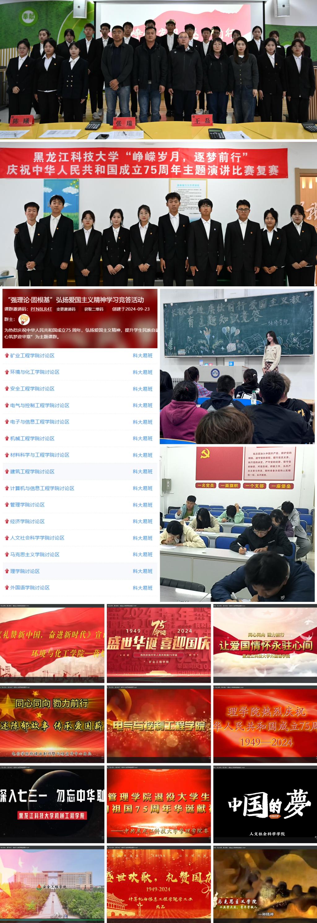 为庆祝中华人民共和国成立75周年,引导大学生弘扬爱国主义精神和勇于担当、主动作为的进取精神。学工部(处)统筹指导各学院在全体学生中开展“挺膺担当砺青春 逐梦复兴新征途”庆祝中华人民共和国成立75周年主题教育活动。