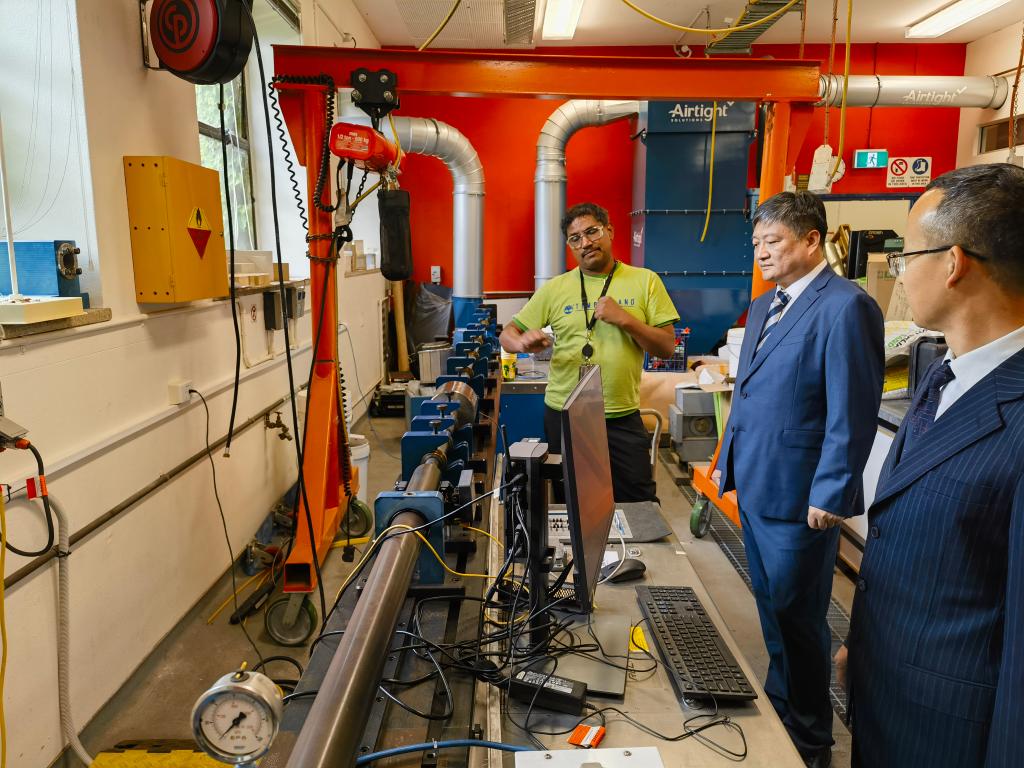 代表团在伍伦贡大学的访问期间,与澳大利亚研究委员会(ARC)可持续采矿设备未来创新复合材料培训中心主任姜正义教授、副主任任廷祥教授,伍伦贡大学国际合作与战略伙伴关系部经理莉莉·安,伍伦贡大学采矿学院院长费萨尔·海教授以及咨询委员会委员等进行了深入交流,双方在2023年已达成的关于青年教师访学、国际合作项目申报、共建国际合作联合实验室及研究生培养等合作意向基础上,细化了具体的合作路径与实施办法。会后参观了该校创新制造、智能制造、摩擦学等实验室。