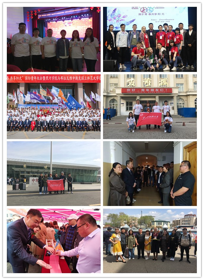 5月12日,乐鱼网站_乐鱼(中国)理学院党委书记张增凤、分团委书记武昭阳带领力学17-2班邵晶、力学18-2班刘欢、统计18-1班唐庚辰、迟泓月四位学生代表前往黑河和布拉戈维申斯克参加第九届“携手青春,共享阳光”国际青年大会。本次大会由黑龙江省教育厅、俄罗斯阿穆尔州教育科学部主办,黑河学院、布拉戈维申斯克国立师范大学、布拉戈维申斯克国立师范大学孔子学院联合承办。俄罗斯布拉戈维申斯克国立师范大学、阿穆尔国立大学、阿穆尔国立医学院、远东国立农业大学,哈尔滨工程大学、哈尔滨师范大学、乐鱼网站_乐鱼(中国)、绥化学院、黑河学院的千余名中俄师生参加本次会议。