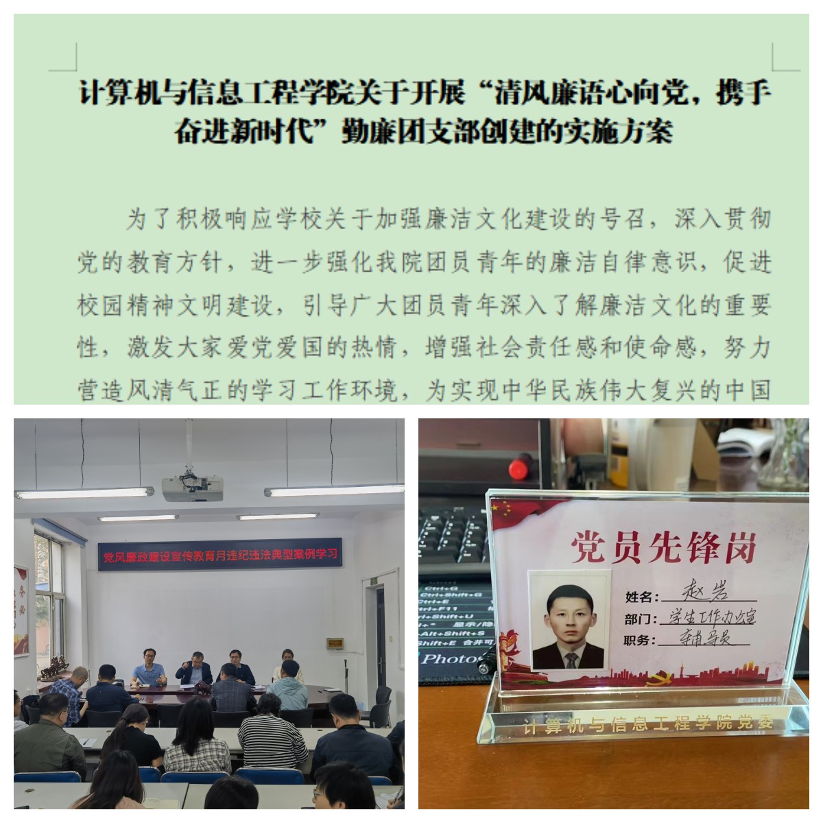 开展“共担时代责任,开创未来谱写新篇”勤廉乐鱼网站_乐鱼(中国)创建活动。计算机学院党委在学院机关各科室设立“党员先锋岗”,进一步压实党员责任,打造政治合格、业务过硬、作风优良、服务高效、清正廉洁的先锋模范队,积极创建学院勤廉机关;学院团委制定了《计算机与信息工程学院关于开展“清风廉语心向党,携手奋进新时代”勤廉团支部创建的实施方案》,进一步强化学院团员青年的廉洁自律意识,引导广大团员青年深入了解廉洁文化的重要性,激发大家爱党爱国的热情,增强社会责任感和使命感。材料学院党委有序有力推进勤廉乐鱼网站_乐鱼(中国)、勤廉院系建设,组织全体教职工剖析违纪违法典型案例,引导党员干部和教职工以案为鉴、警钟长鸣,坚定不敢腐、不能腐、不想腐的政治自觉和行动自觉。