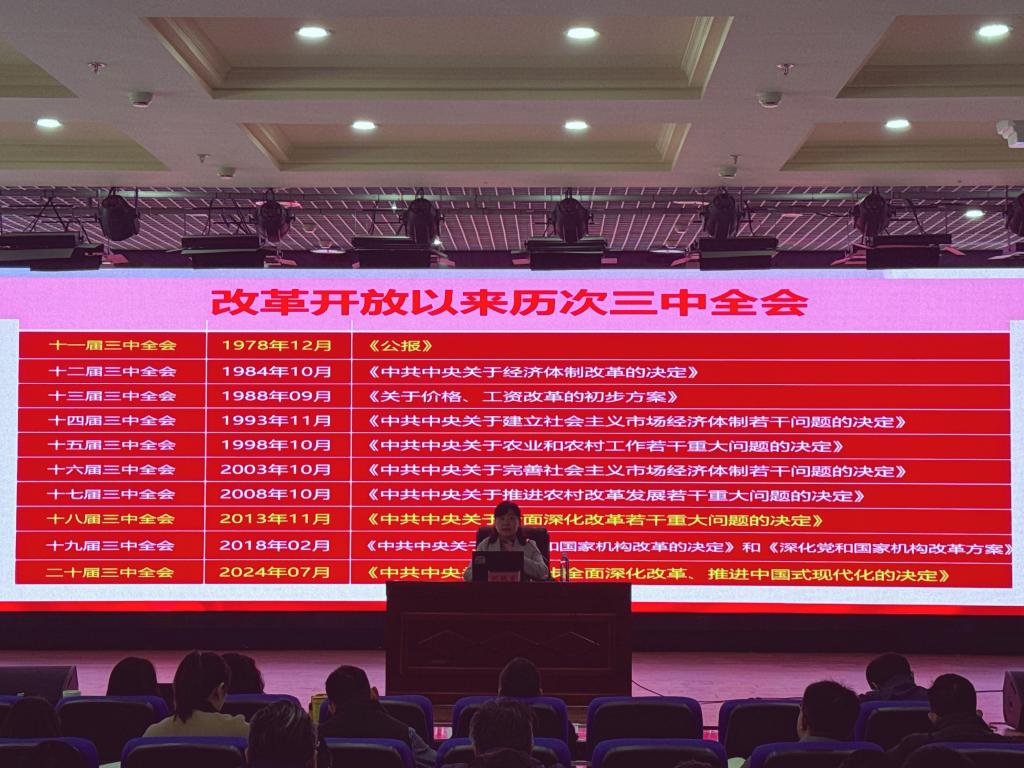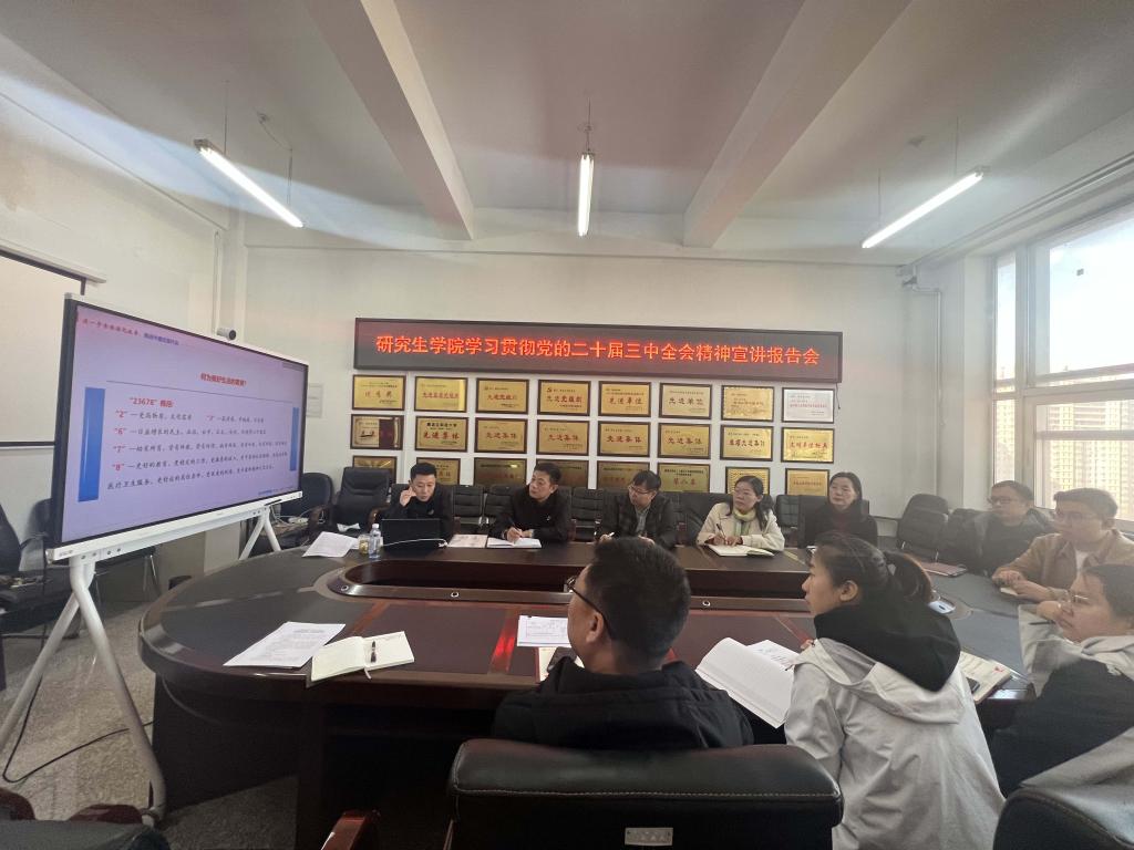 编者按:为深入学习宣传贯彻党的二十届三中全会精神,教育引导全校师生深刻领悟党的二十届三中全会精神的核心要义、精神实质和实践要求,切实把思想和行动统一到全会精神上来,自10月上旬开始,学校理论宣讲团成员围绕党的二十届三中全会精神和全国教育大会精神,在全校各基层党组织开展了理论宣讲活动,推动党的二十届三中全会精神和全国教育大会精神走深走实、落地生根。